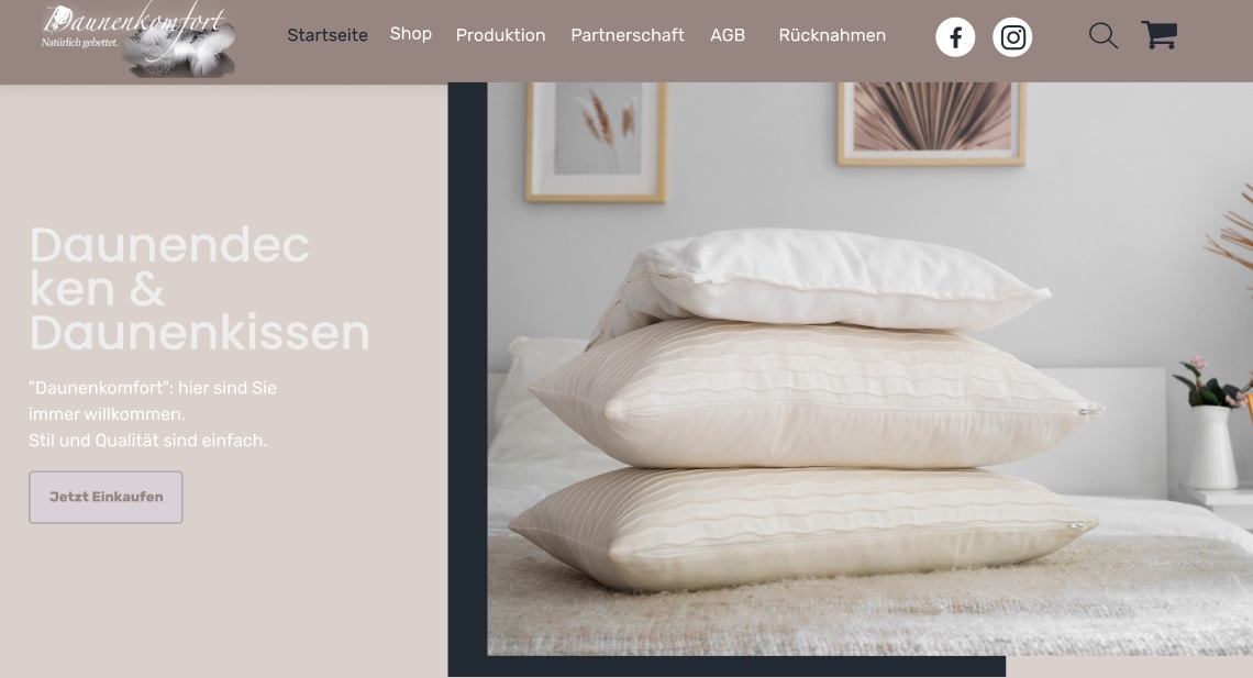- Having analyzed the logo of the company “Daunenkomfort”, our designers selected a palette of colors in which the new design of the site will be implemented.