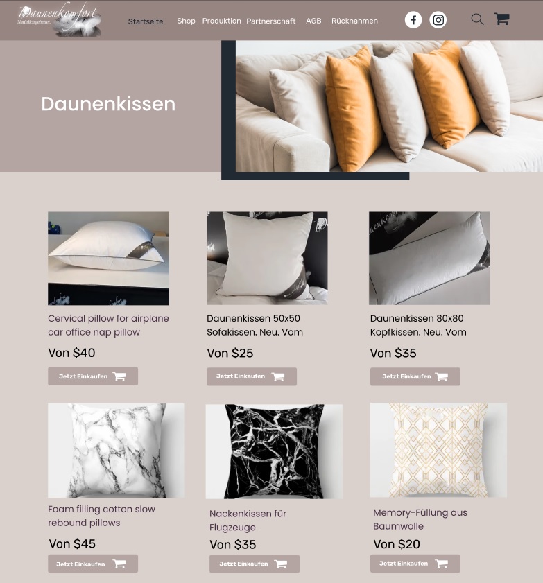 3.After the client approved the layout of the website, the programmer of our team started updating the design on the website of the company “Daunenkomfort.com”. As a result, the design was successfully updated and the functionality of the site was improved.