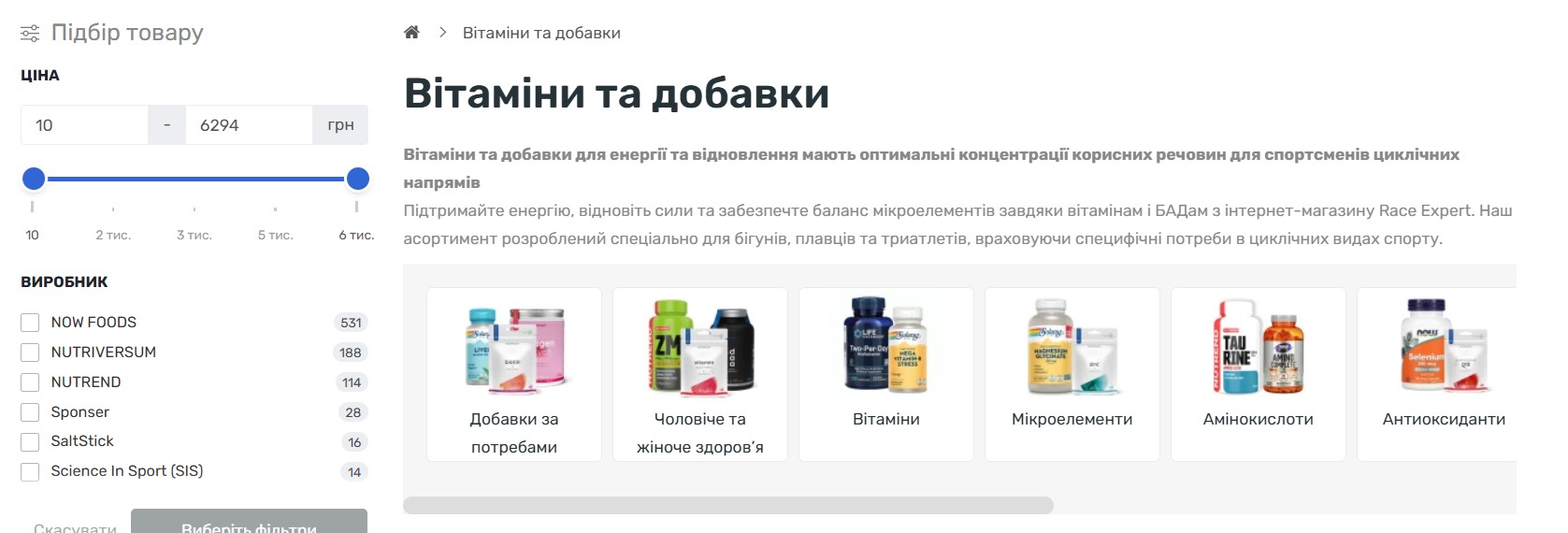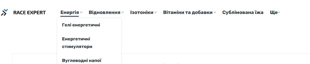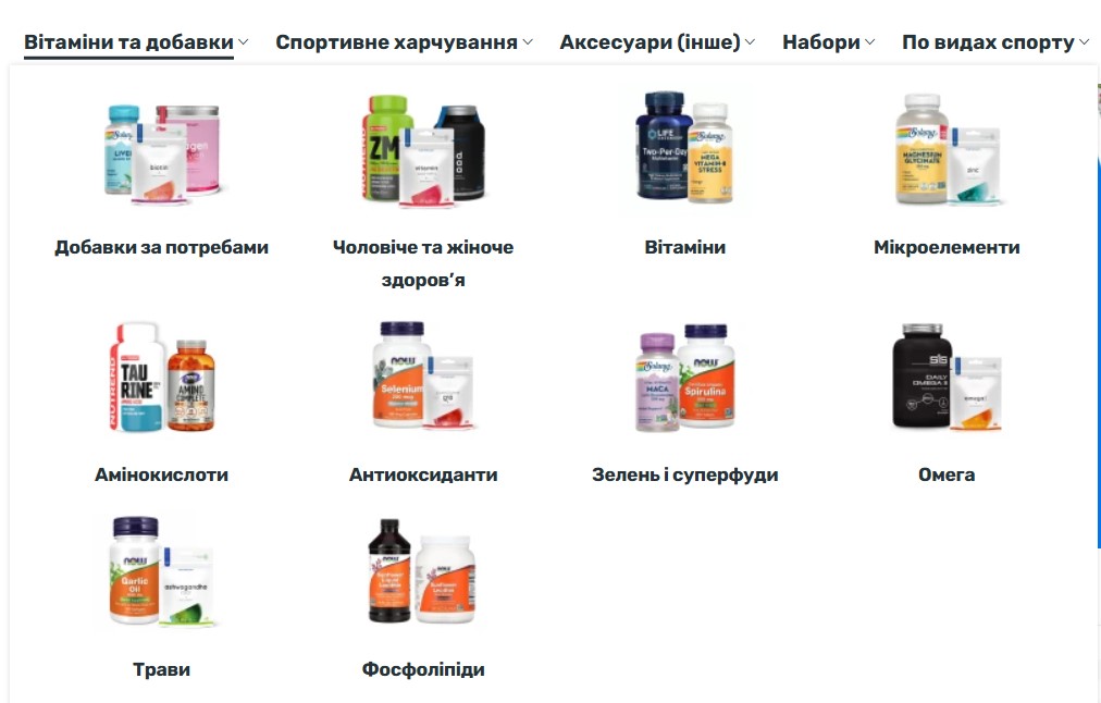 The main menu has been optimized by adding images of sports nutrition according to categories. This optimization allows the user to navigate faster to the necessary product on the site.