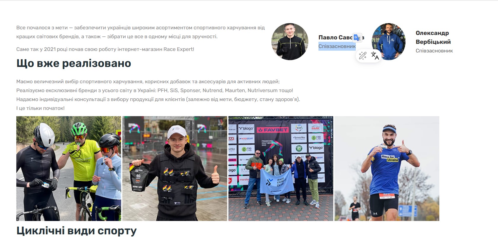 On the about us page, a photo of the co-founders has been added, photos from competitions and charity work have been added, increasing user confidence in the site due to the presence of organic photos.