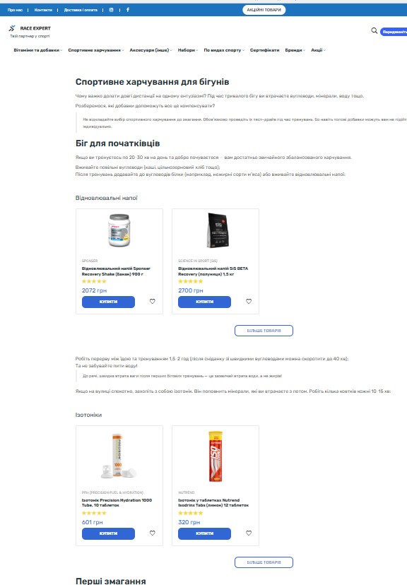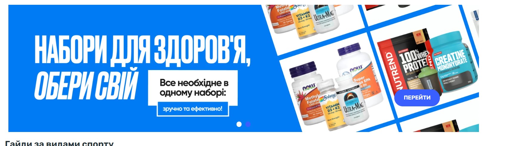 In the process of optimizing the main page our specialists decided to add a block “Guide to sports”. Thanks to the addition of this block people who have just started to engage in this sport can see what nutrition consumed by athletes engaged in this sport. And get all the necessary information on nutrition.