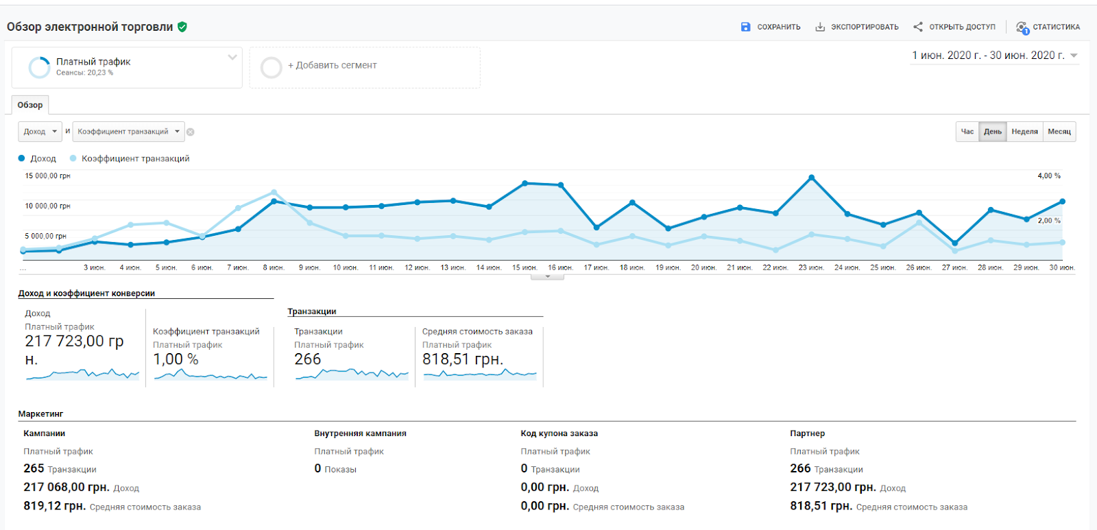 The results of an advertising campaign on Google