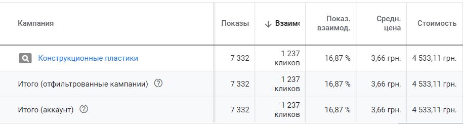 Google advertising campaign, which was launched in the period from March 1 to March 31, is shown. The cost of all advertising campaigns amounted to UAH 4,533.11.