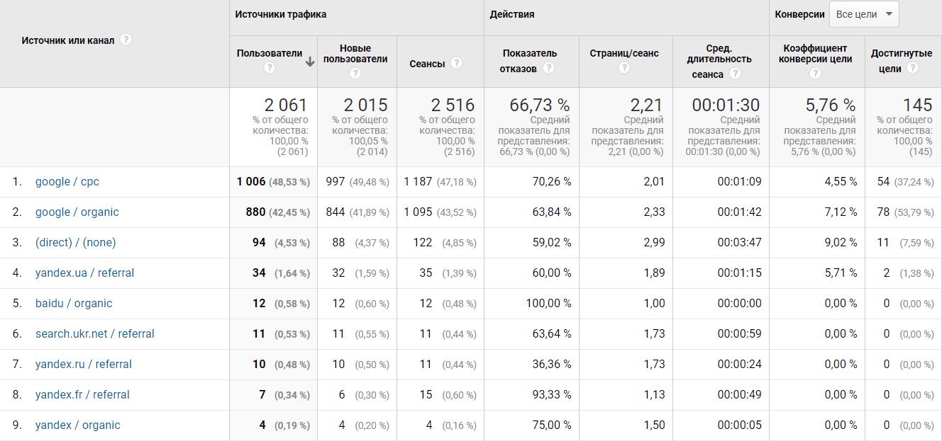 For the month of March, the number of users on the site amounted to 2,061. During this time, there were 1,006 users from Google ads, of which 997 were new users, and 1,187 sessions were realized. (A session is a stretch of time when a user is actively engaging with your website. One user can make multiple sessions).