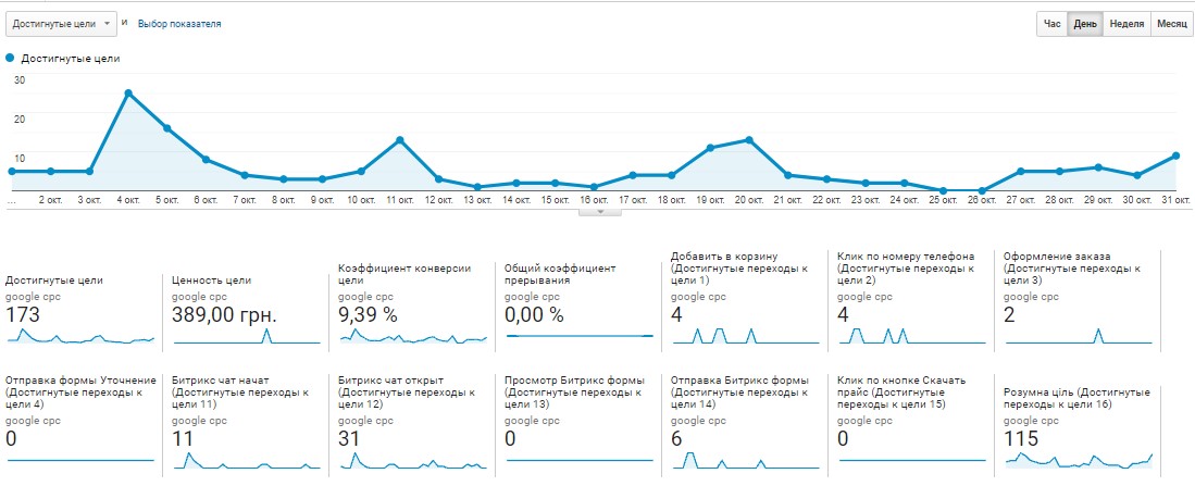 Google advertising, which was launched in the period from October 1 to October 31, is shown. The cost of all advertising campaigns amounted to 12,317.78 UAH.