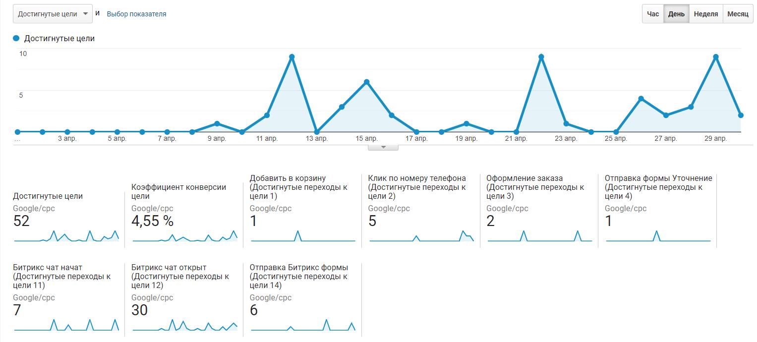 Contextual advertising, as expected, brought the customer positive results. For the period from 01.04.2021 to 31.10.2021 increased the number of users on advertising by 510, and also rose the rate of new users, namely 467 new users more. The level of conversions increased by 121. At the same time, the average cost per click decreased by 2.85 UAH. Due to the positive work of advertising at the client accordingly increased the level of sales on the site.