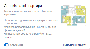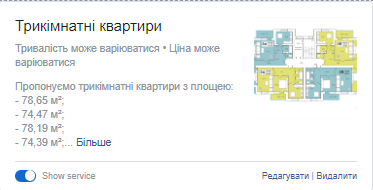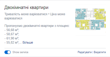 4. We added tap “Service” for clients’ convenience. There we posted variants of entryways spacing with description of quadrature of every flat.