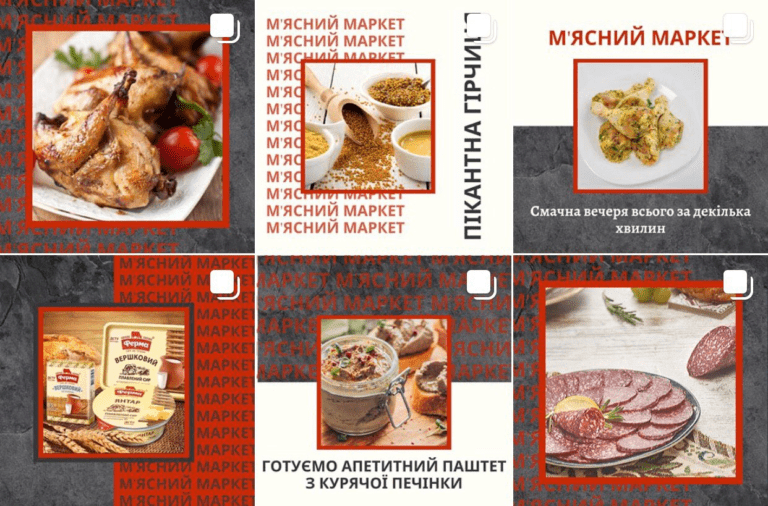 Before writing the content, we had filled and prepared Instagram and Facebook accounts. The visual of page “Miasnyi Market. Khmilnyk” is a little bit different from that of Khmelnytskyi shop.