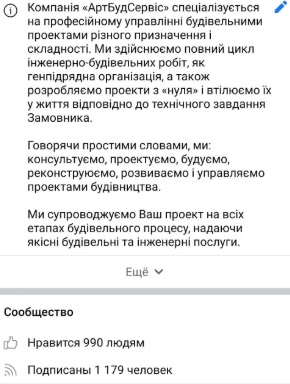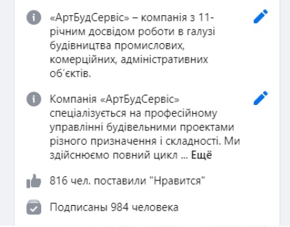 SMM promotion of Facebook and Instagram pages of LLC “Art Bud Service” took place in the period from 01.06.2021 to 31.01.2022.