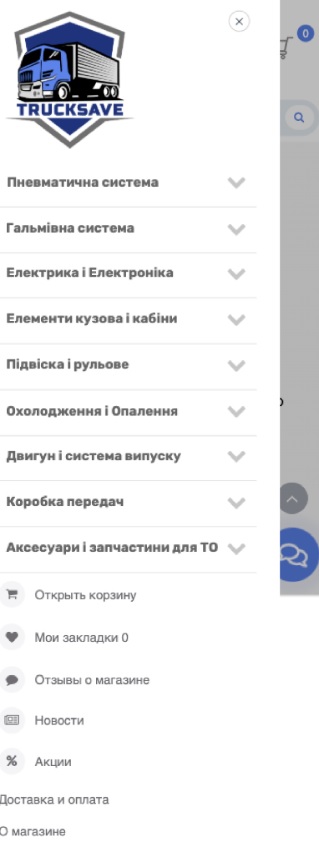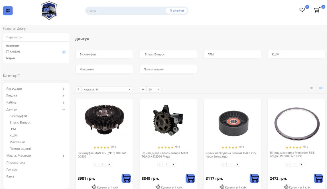 2.When hovering over a certain category of goods, the category is broken down into subcategories, which allows you to choose the necessary variant of spare parts without going from page to page of the site.