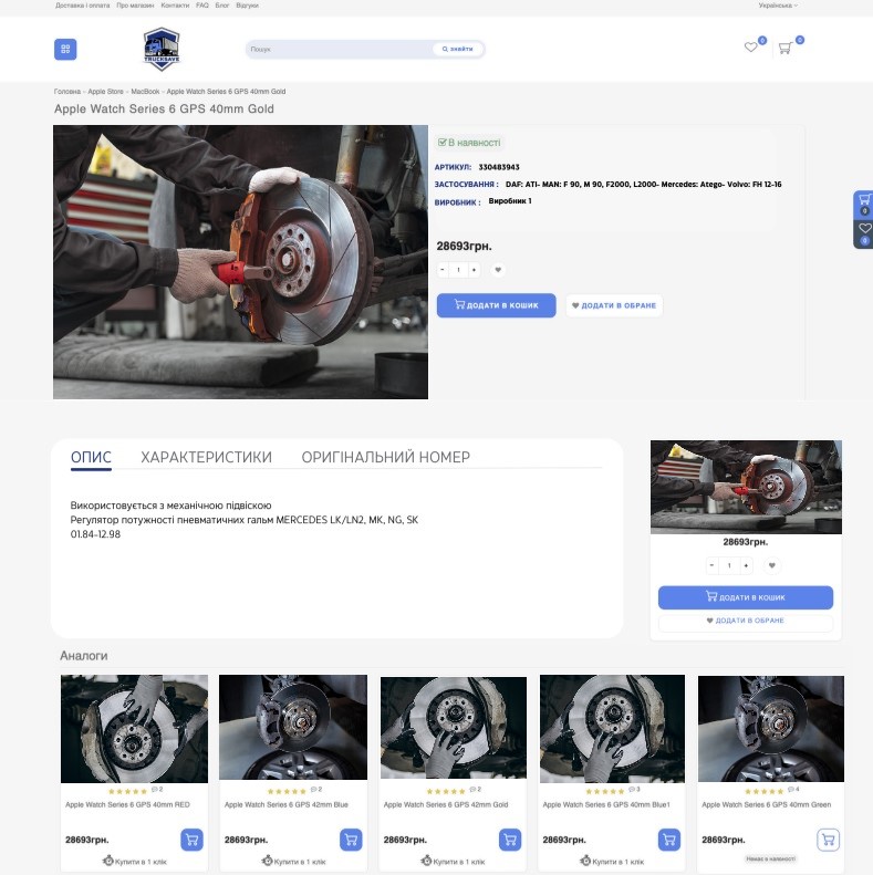 5.Optimized product card, added article, application, added analogs block.