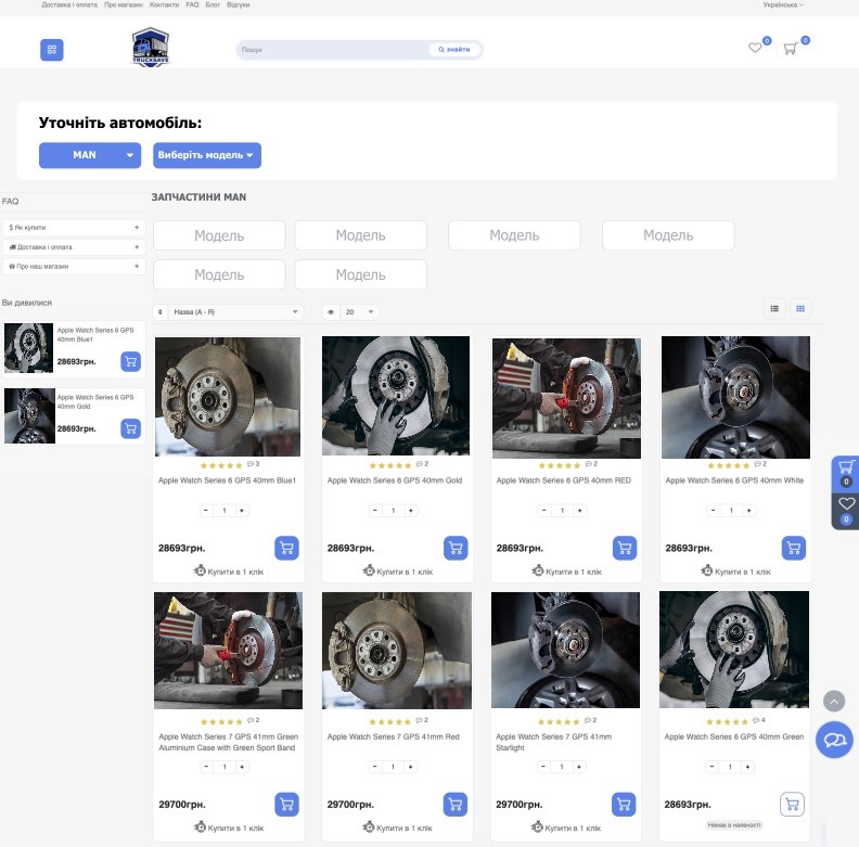 4. optimized design of site categories display, added additional functionality in the form of filters by car brands.