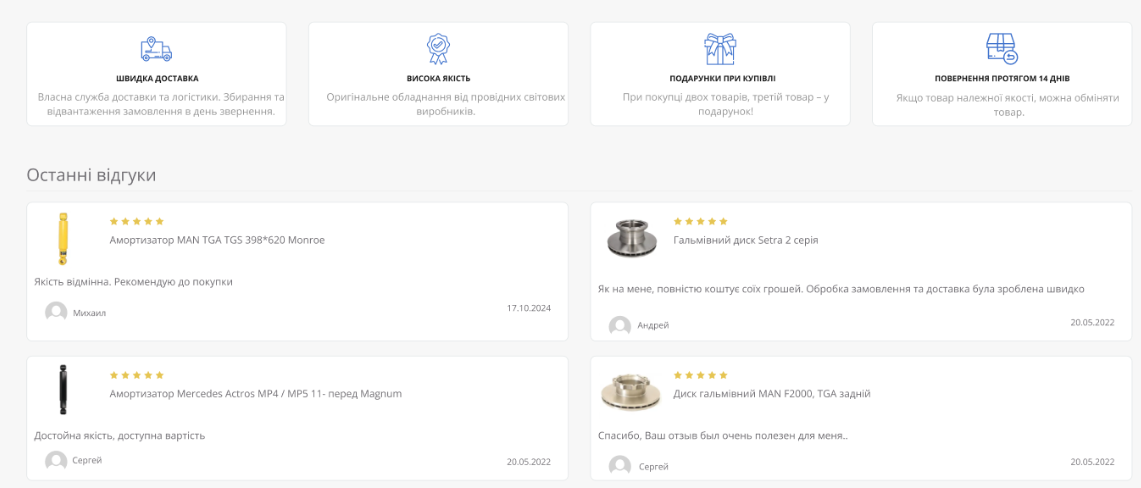 Figure 2 — “Benefits” and “Reviews” blocks on the main page