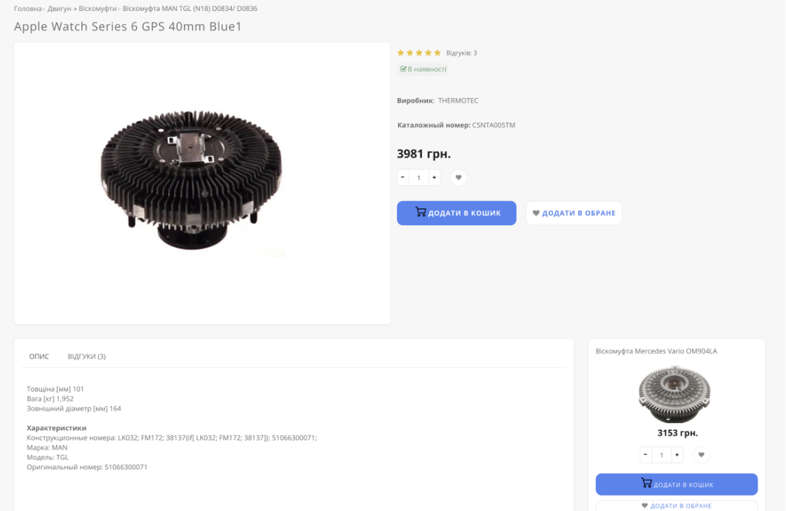 The product card is a key element of the site, where the user gets all the information they need to make a purchase decision. In this section, we focused on creating a convenient and informative design that allows you to quickly find answers to key questions: characteristics, price, availability, delivery and payment options.