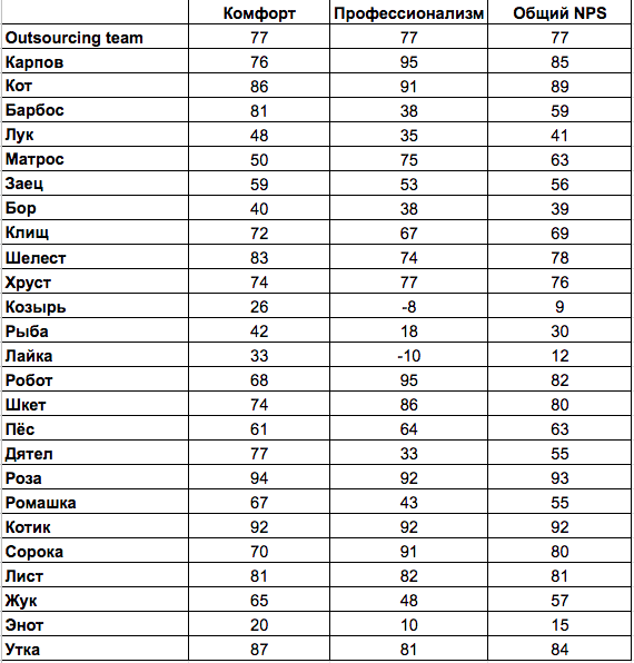 В Аутсорсинг ТИМ мы рассчитываем индекс NPS для оценки профессионализма каждого сотрудника и уровня комфорта общения с ним.