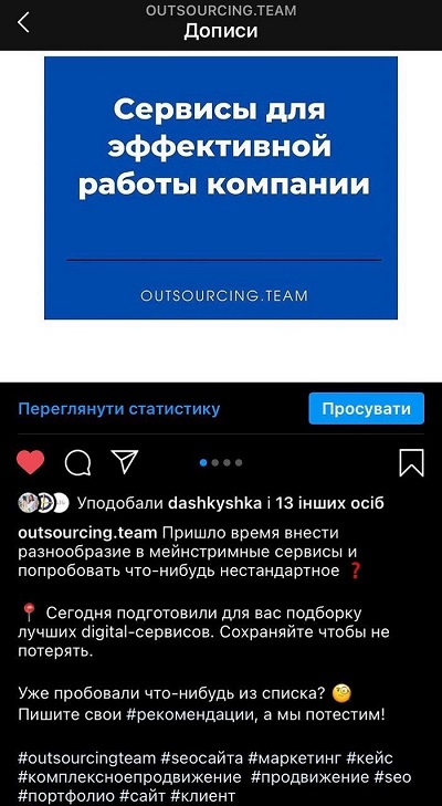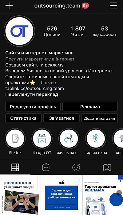 Також відмінним рішенням буде вчасне звернення до професіоналів. Наші спеціалісти з маркетингу мають великий досвід у роботі з брендами у різних галузях. Тому ви можете звернутись до нас за консультацією і ми підберемо для вас індивідуальну стратегію для просування у соціальних мережах. Ви можете бути на 100% впевнені, що в Outsourcing Team знають як правильно оформити Інстаграм для бізнесу.