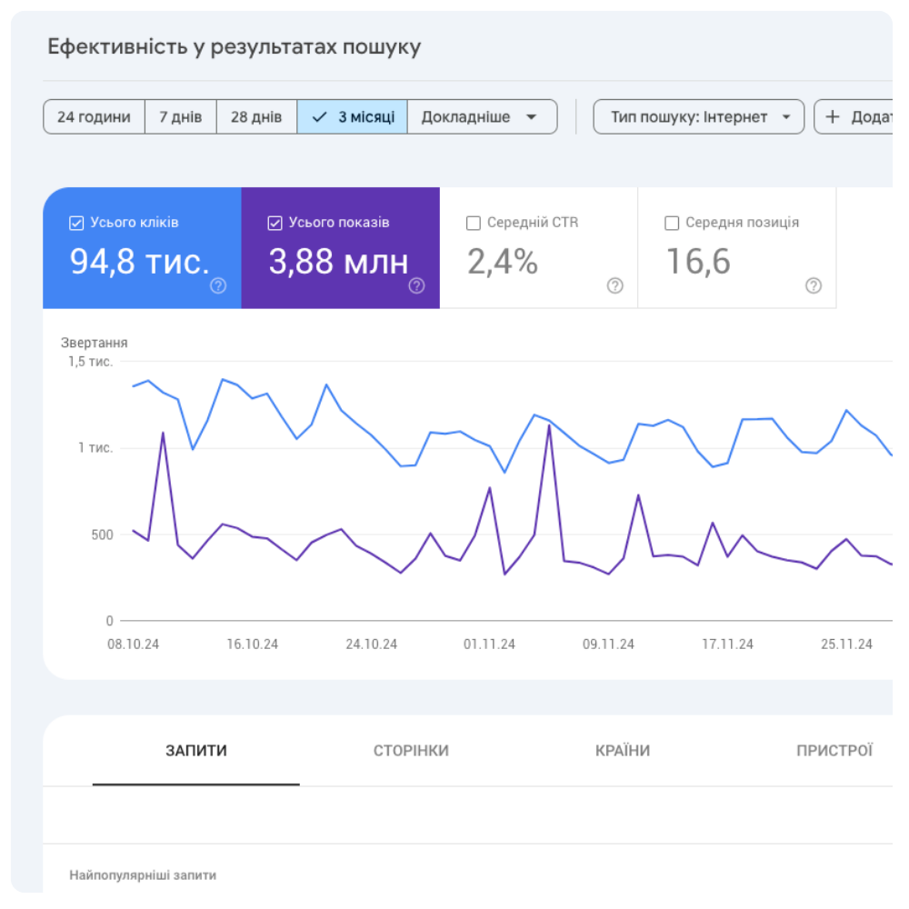 Оптимізуємо метатеги, контент, внутрішню перелінковку та швидкість завантаження сторінок для кращої індексації пошуковими системами.