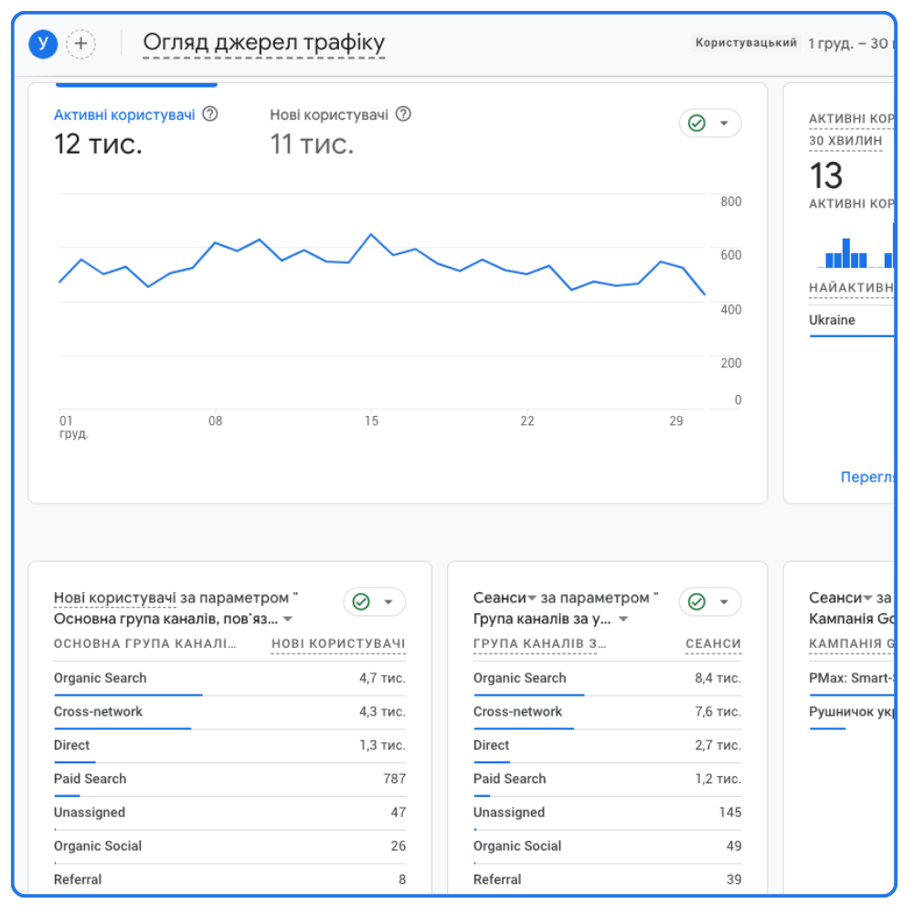 Інтегруємо Google Analytics та інші інструменти аналітики для відстеження трафіку, конверсій та поведінки користувачів на сайті.